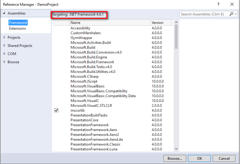 Now the list of available .NET Framework assemblies are populated.