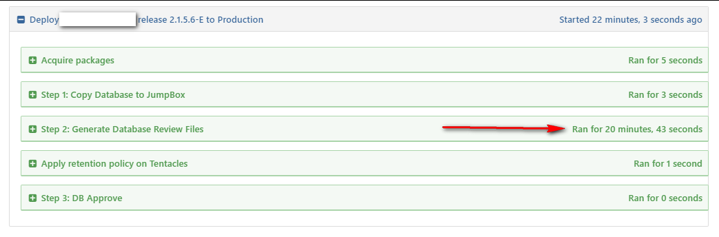 The time had finally come. It was time to run the Redgate automated database deployment process in production for the first time. All we had to do was click the deploy button in Octopus Deploy, and we would be on our way. The button was pressed, and we were on our way. Now we just needed to wait. And wait. And wait.