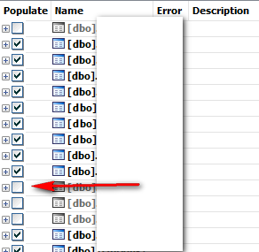 Deselect unwanted tables