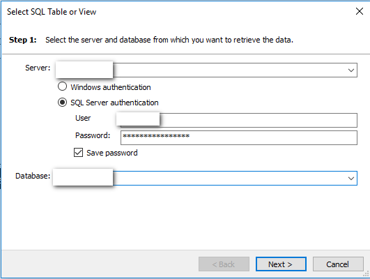 Next up select the table. Chances are the schema matches, which means the table names match, the UI will automatically select the table name for you.