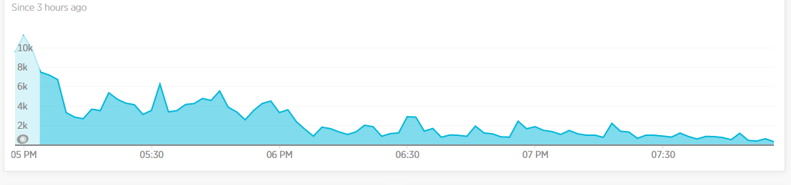 My team has a New Relic Insights dashboard up in our area on a large screen. As I was talking to someone, I noticed the error count jump from 10 to 20 to 40 and 80 in a manner of minutes. Something was not right. That is very abnormal. We shouldn't have more than five errors an error. 80 in that short of a timespan is bad. Soon enough our New Relic alerts started coming in through Slack and Email.